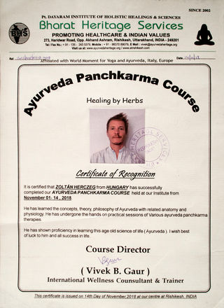 In the meantime the world stoped during the pandemic situation I could not stop, I developed my knowledge. I did three online courses. I became an Ayurveda diet & lifestyle advisor and Yogic nutrition advisor, I did a meditation course to give my best for You. The next goal for my furute training is the wonderful state of Kerala, the Ayurveda world center in South India.
